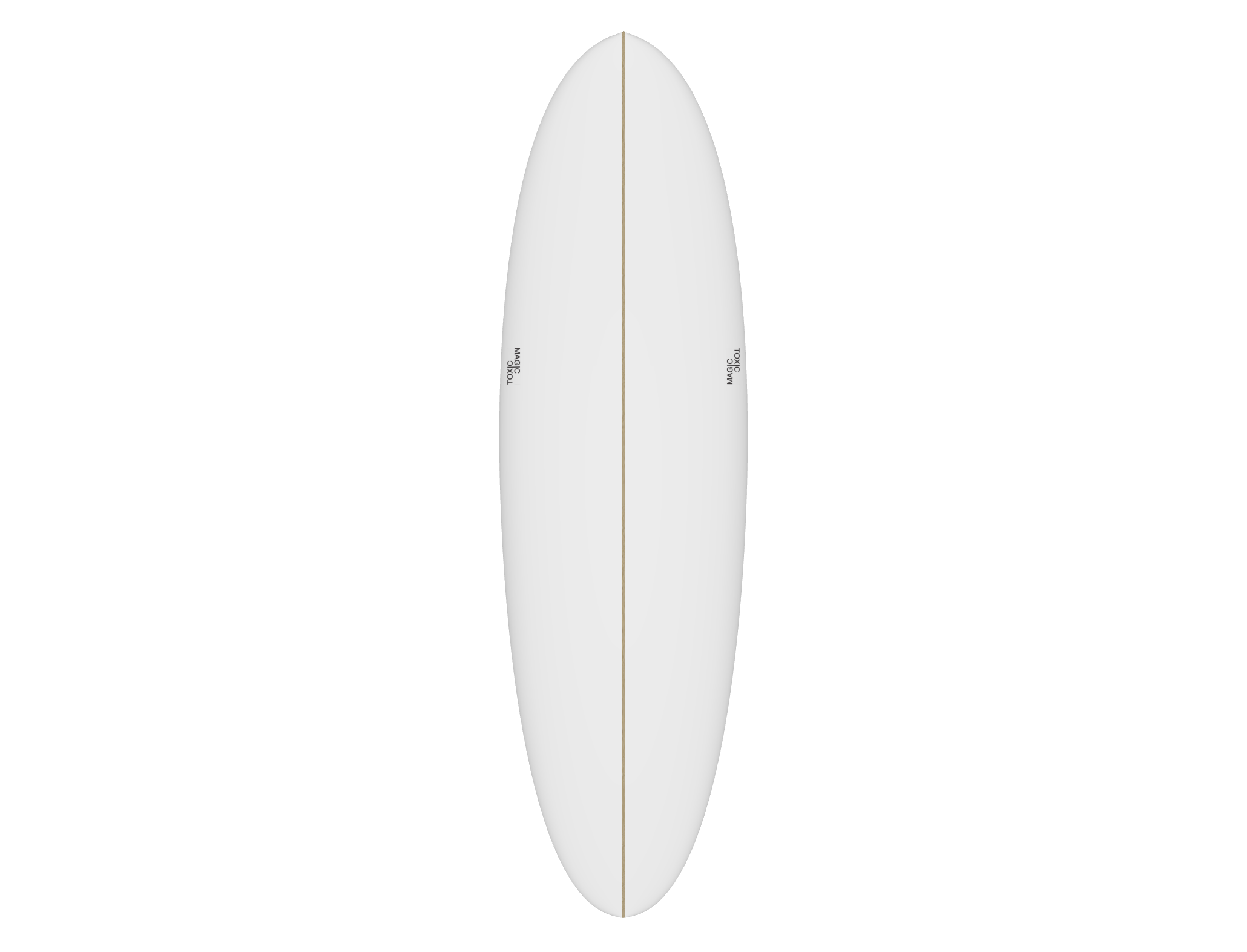 This board model started as a mistake. It was a bad CNC cut of the Mini egg model that left it shorter, thinner and not suitable (in my opinion) for a single and side-bite configuration. I made it a quad setup because I wanted to keep the sensitivity of a thinly foiled board and keep it neutral and functional. The magic of this board is the surface area float at speed and its willingness to be surfed in the pocket making it a highly shred-able alternative board whether you ride retro shapes or performance boards. Its sits slap bang in the middle of the spectrum.